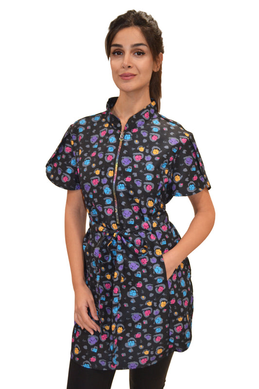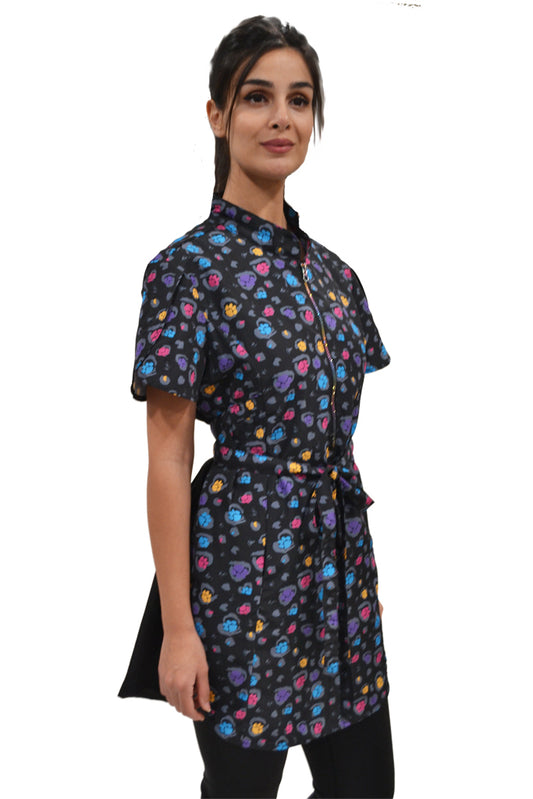 213- Rainbow Half Zipper Front Mini Paw Print Stylish Water Resistant Hair Resistant and Bleach Resistant Scrub Tunic For Pet Groomers