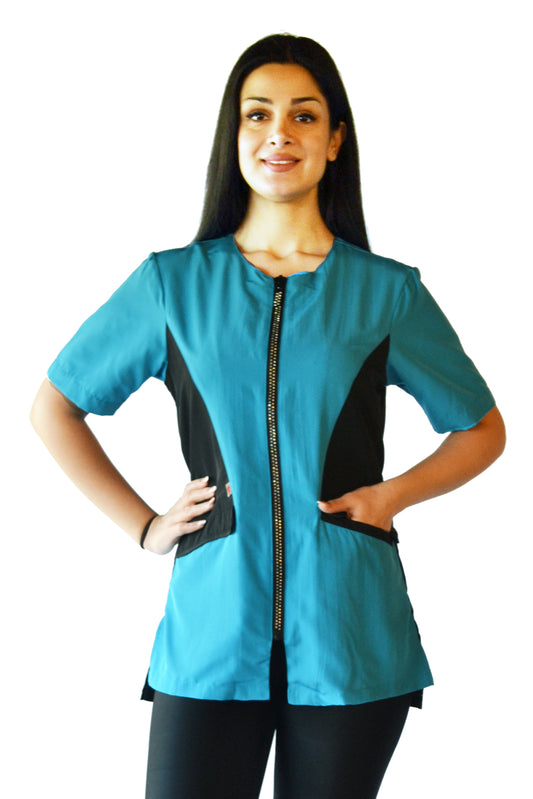 You just can’t beat black when it comes to professional jackets, but when you shop at Ladybird Line, you can jazz things up with a rhinestone zipper. If you’re looking to add a little color to your look, choose a black smock with a red zipper. If black isn’t really your thing, choose our eye-catching blue jacket instead.