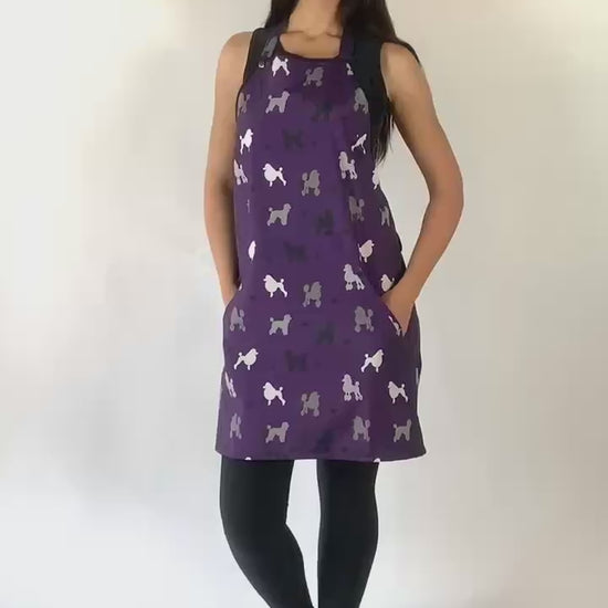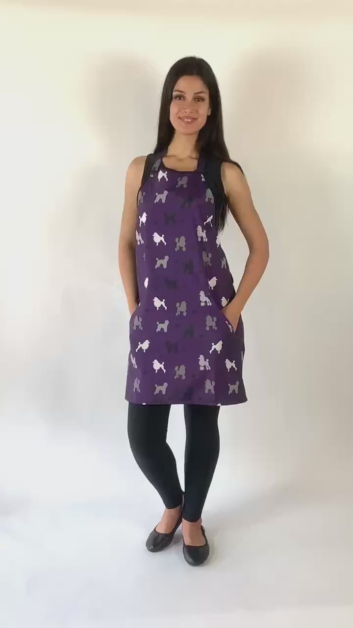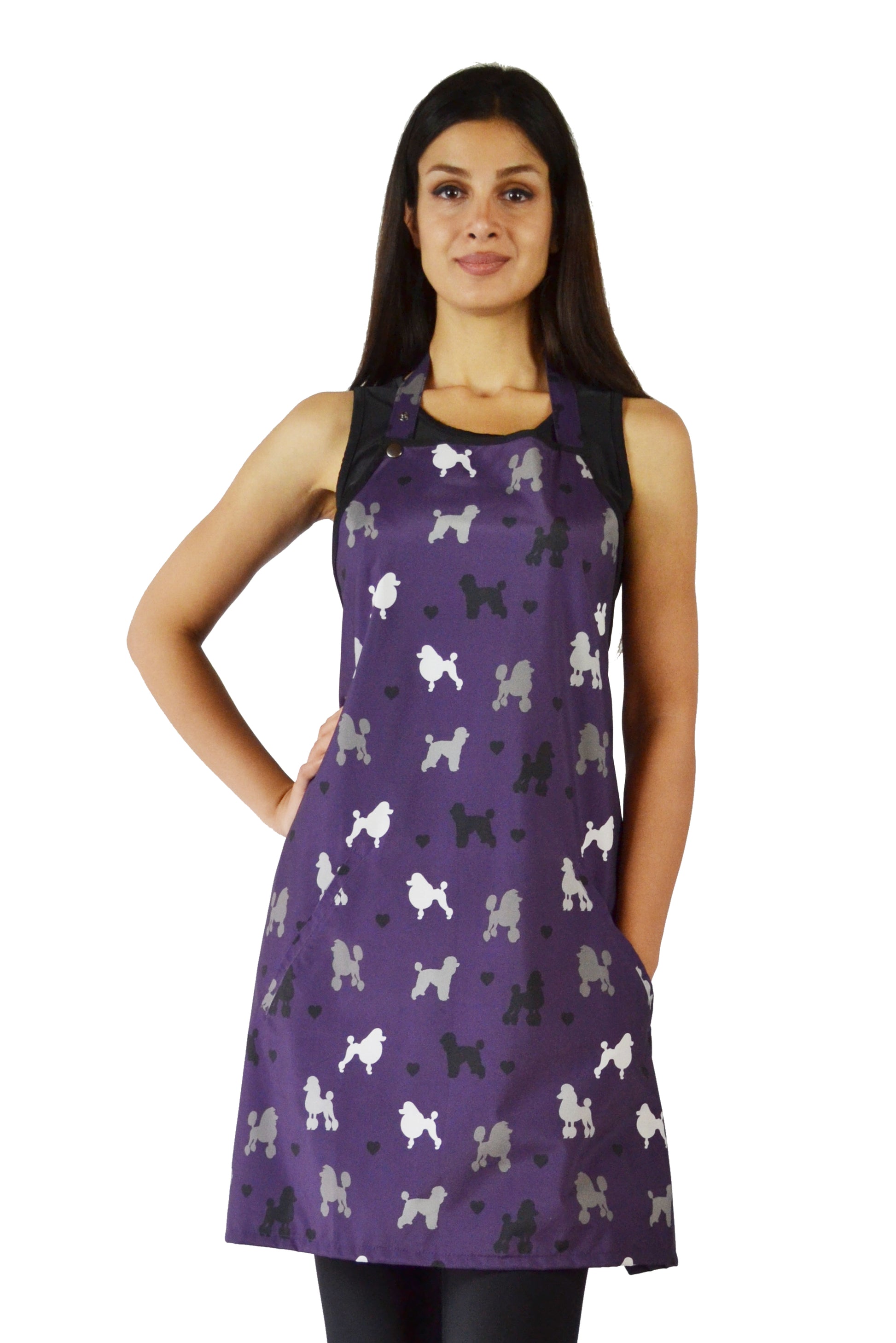 - FUNCTIONAL AND FUN – They are waterproof, hair repellent, bleach resistant and chemical proof, allowing them to be durable and comfortable without sacrificing their purpose. They also feature deep side pockets. The purple poodle print design a hit with poodle lovers and pet groomers. This apron is also is the perfect match to our lightweight waterproof purple poodle waterproof bathing jacket.